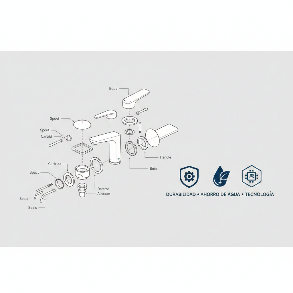 En River Faucets, creemos que la verdadera calidad de una grifería se demuestra en su interior. Mientras otros se enfocan solo en el acabado exterior, nosotros nos obsesionamos con los componentes que garantizan un funcionamiento suave y preciso por años.
